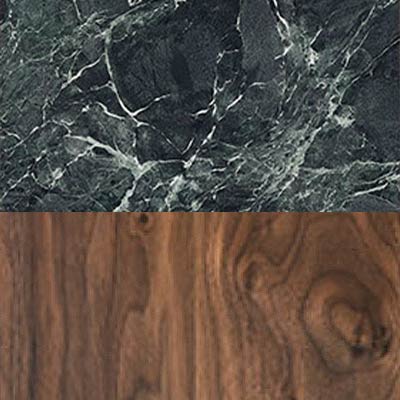 Die Tischplatte ist in zwei exklusiven Varianten erhältlich: Walnussfurnier oder Keramik.
