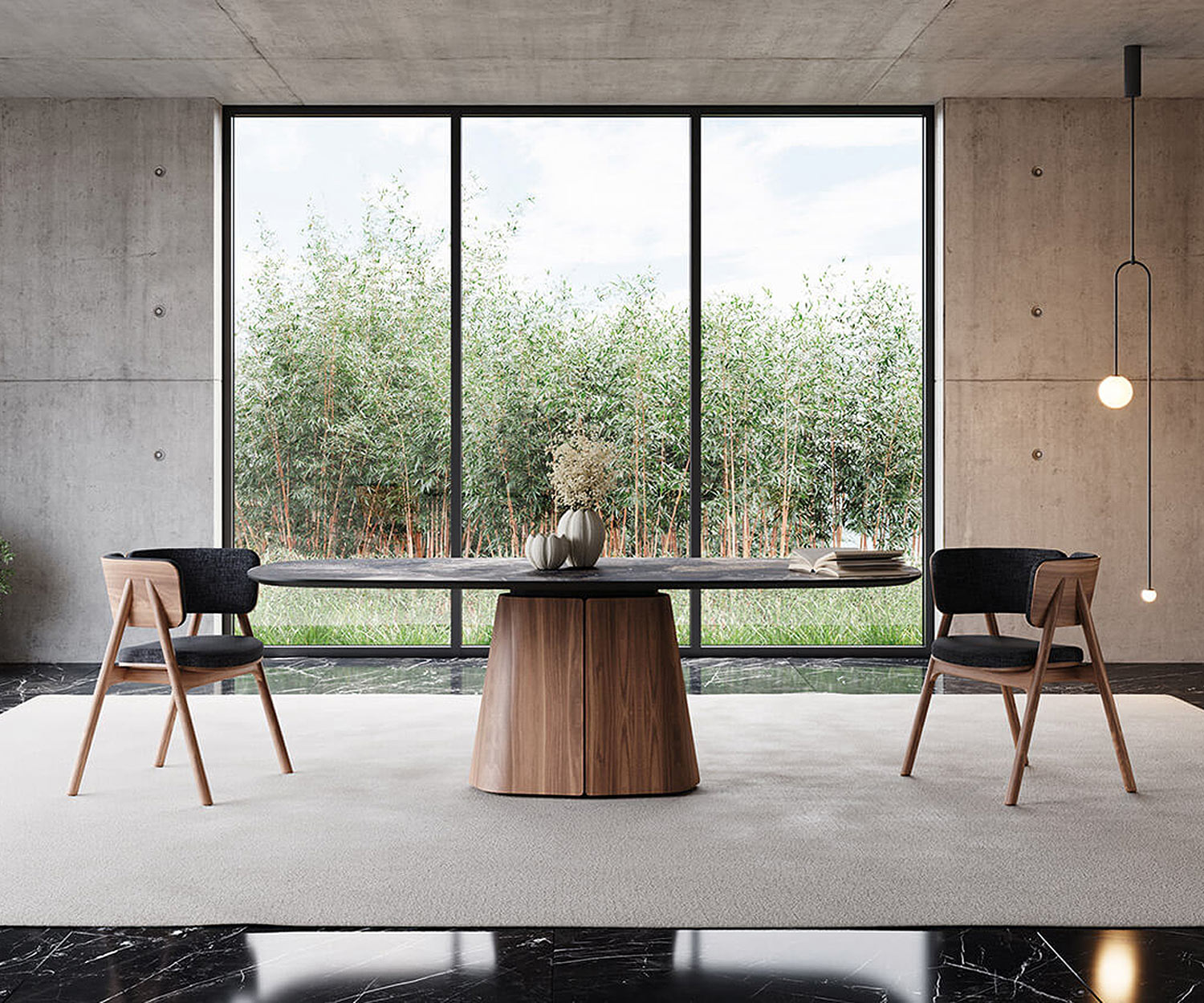 Der al2 tessera 001 Design Esstisch begeistert mit seinem außergewöhnlichen Design, das durch den zylinderförmigen Sockel in edlem Holzfurnier und die exklusive Tischplatte aus Keramik oder Walnussfurnier besticht. Die zentrale Sockelausführung sorgt nicht nur für eine stabile Konstruktion, sondern auch für großzügigen Platz für Ihre Gäste. So ist der Tisch ideal für Familienfeiern und gesellige Anlässe. In Griechenland mit besonderer Sorgfalt gefertigt, bietet dieser Esstisch eine exklusive, individuelle Verarbeitung, die Ihrem Esszimmer eine elegante und moderne Note verleiht.