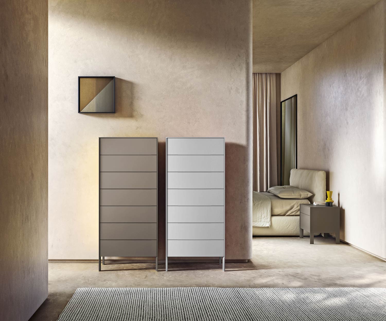 Die Innenseiten der Capo d´Opera Another Day Hochkommode besteht aus Melamin. Die Außenseiten und Fronten bestehen aus einer hochwertigen MDF-Platte und sind matt lackiert.