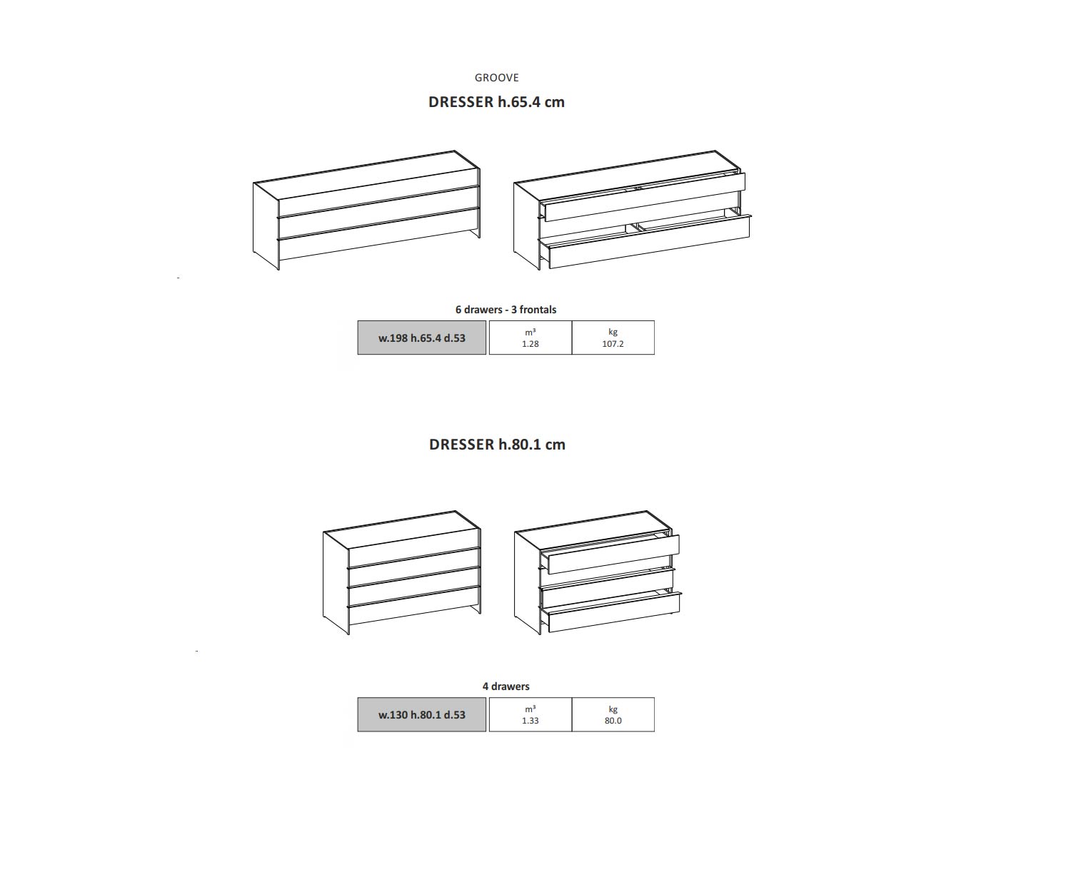 B 130 cm / H 80 cm / T 53 cm