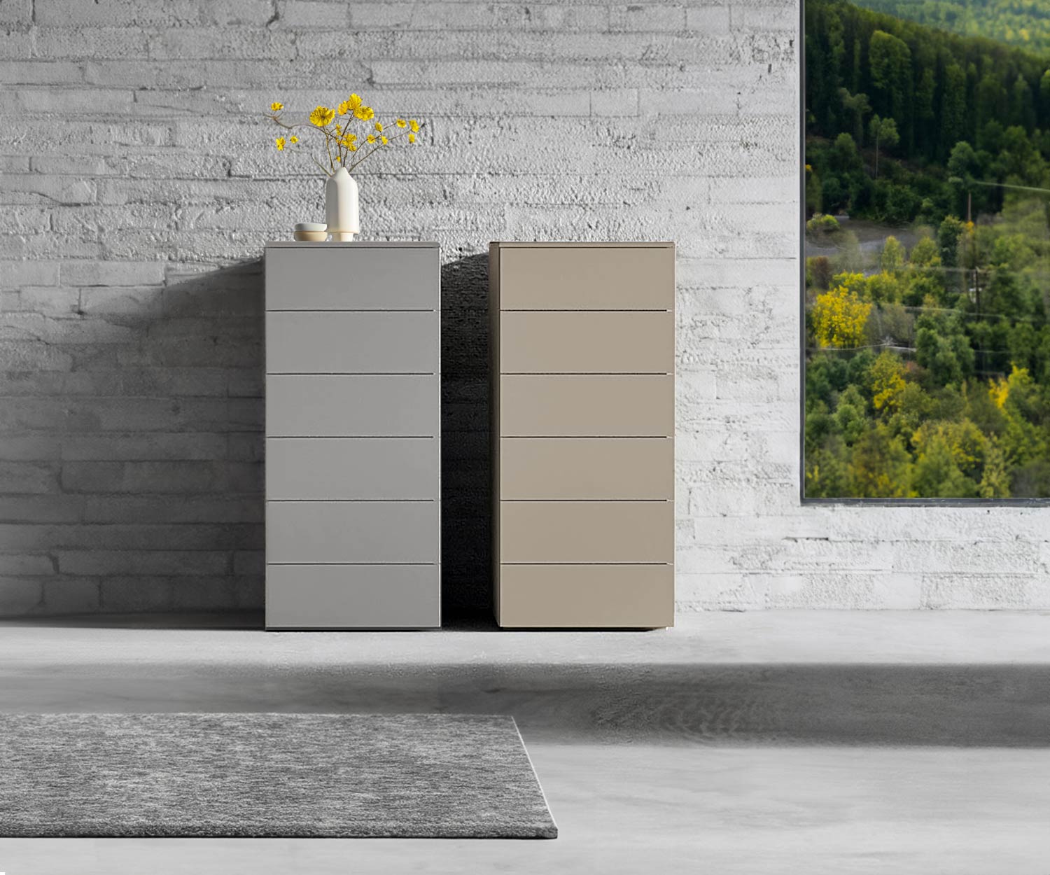 Die Atena Hochkommode ist in drei matten Farben erhältlich: Bianco Weiß, Nuvola Hellgrau und Canapa Hellbeige. Wählen Sie einfach Ihre Wunschfarbe im Konfigurations-Menü aus, um Ihre Kommode ganz nach Ihrem persönlichen Stil zu gestalten.