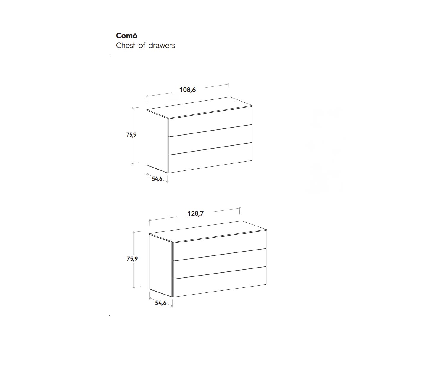 B 128,7 cm / H 75,9 cm / T 54,6 cm