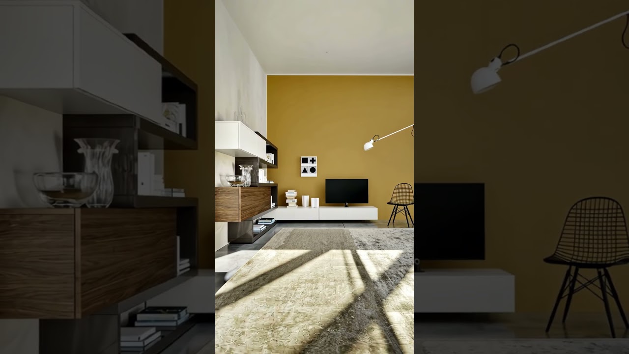 Moderne Livitalia Design Eckwohnwand C29A für kleine Wände. Die Wohnwand hat ein TV Lowboard mit integrierter TV Halterung, die den Fernseher schweben lässt und die Kabel unsichtbar in das Lowboard führt. Das Lowboard steht auf transparenten Füßen und muss nicht an der Wand befestigt werden. Das Bücherregal besteht aus einem gestapelten Board mit geschlossenen Klapptürelementen. Individuelle Anpassungen sind auf Anfrage möglich.