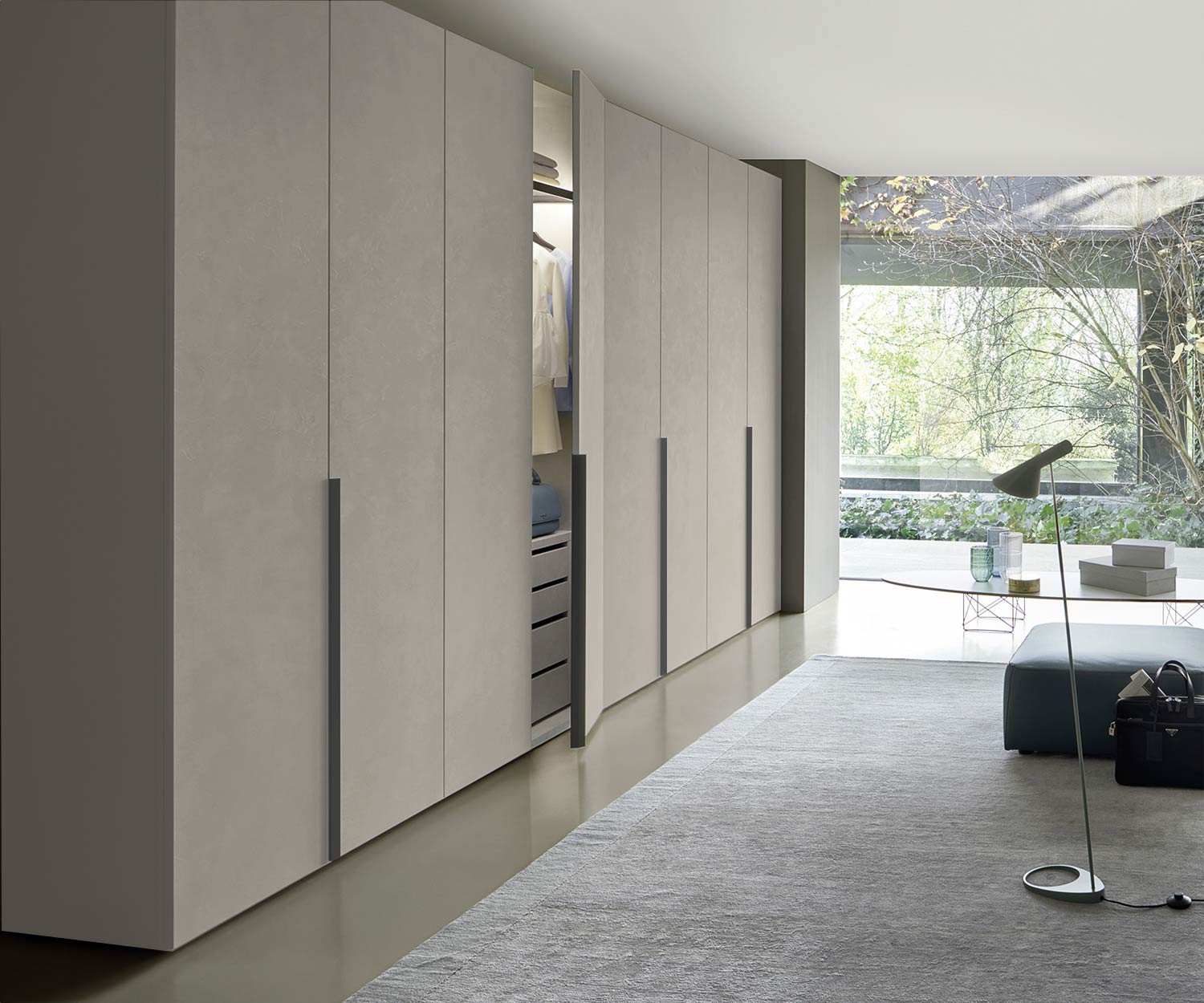 Der Livitalia Liscia ist ein besonders minimalistischer Design Kleiderschrank, der durch seine außergewöhnliche Beton Spachtel Optik auffällt. Diese gibt dem Schrank nicht nur ein besonderes Erscheinungsbild, sondern macht ihn auch widerstandsfähiger gegen Kratzer und tägliche Gebrauchsspuren.