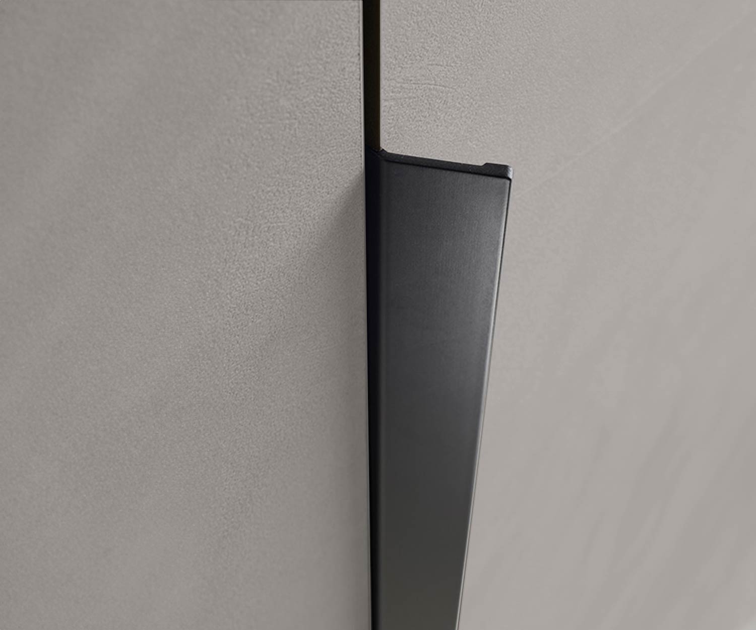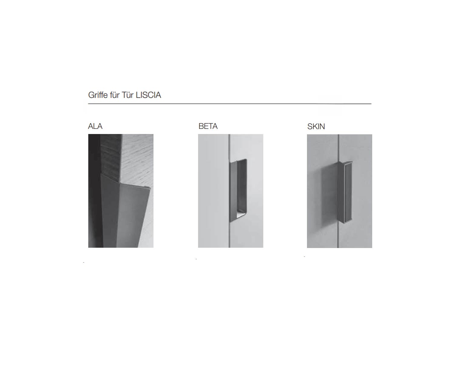 Nach der Bestellung Ihres Wunsch Kleiderschranks, kontaktieren wir Sie für die Auswahl der Griffe. In der Bildergalerie sind die langen Metallgriffe ALA und die kurzen Metallgriffe BETA und die graue Griffe mit grauem Lederdetail SKIN zusehen. Die Griffe sind im Kaufpreis bereits enthalten, es entstehen keine zusätzliche Kosten.
