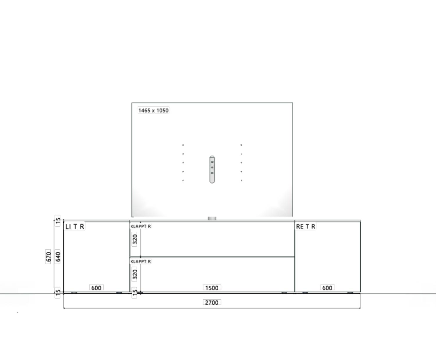 2 x Klapptür (mittig): B 150 cm / H 32 cm