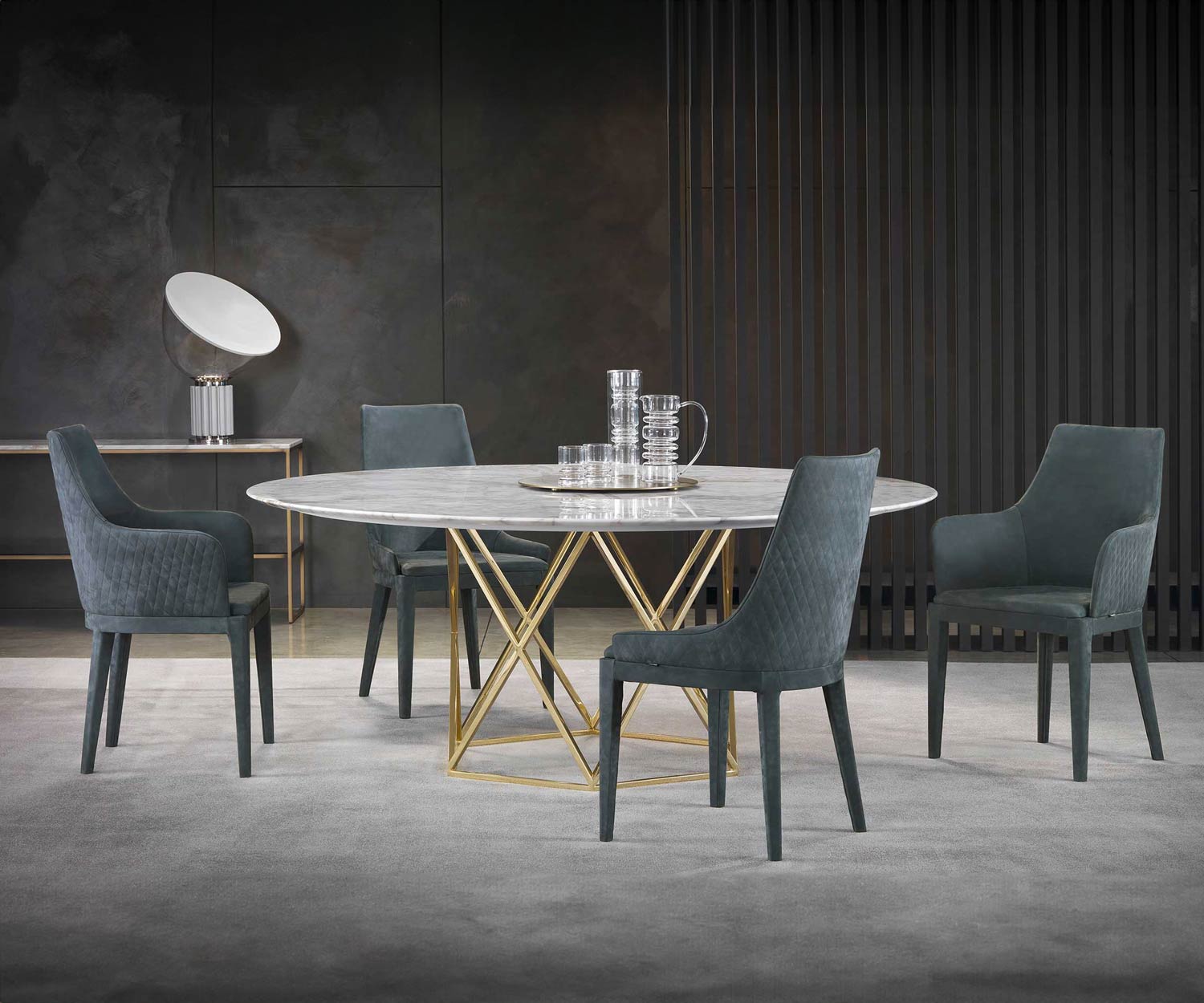 Der Livitalia Tatlin Marmor Design Esstisch bietet eine wunderschön verarbeitete Tischplatte aus Marmor. Für jedes modern eingerichtete Esszimmer ist dieser edle Marmor Tisch eine Offenbarung. Es ruht auf einem metallfarbenen Gestell mit formschönen Verstrebungen. Dieser Tisch wird für Sie ganz individuell in Italien produziert.