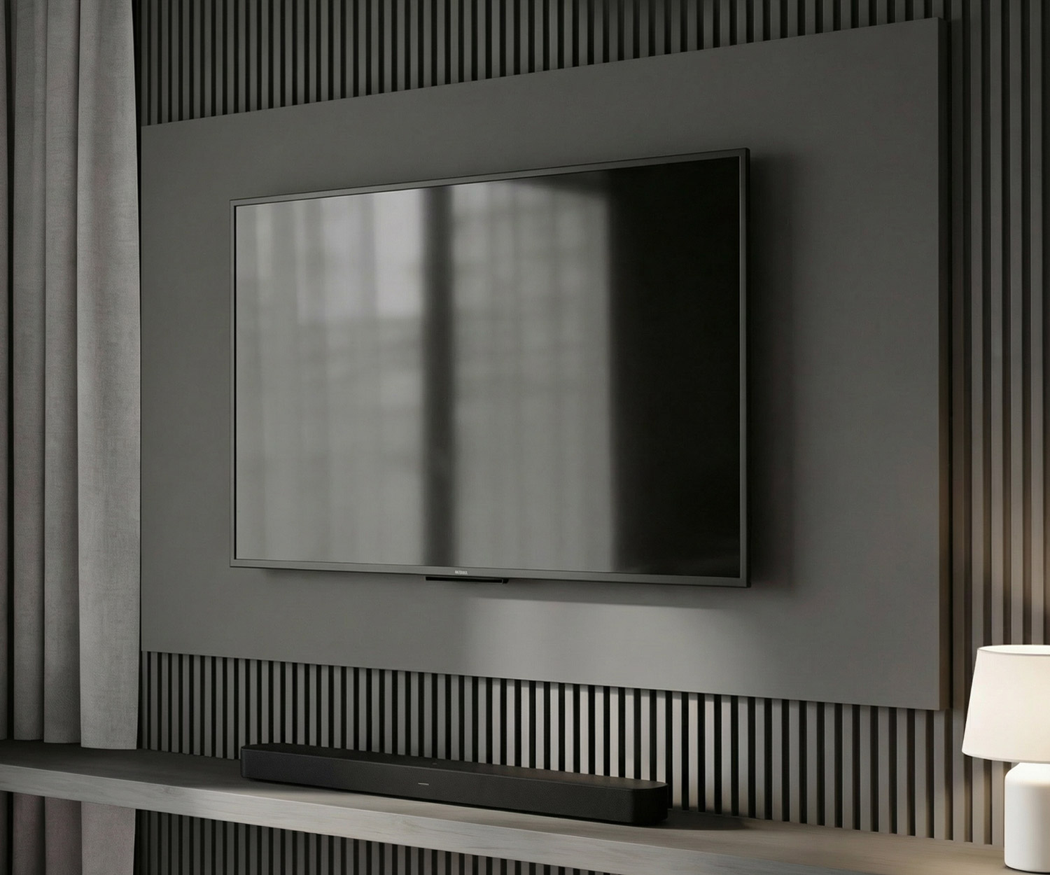 Mein TV hat ein neues Zuhause gefunden. Wirklich schöne Verarbeitung. Das dunkelgrau sieht richtig gut aus. Mit der Beleuchtung wirkt das Paneel einfach unglaublich hip.