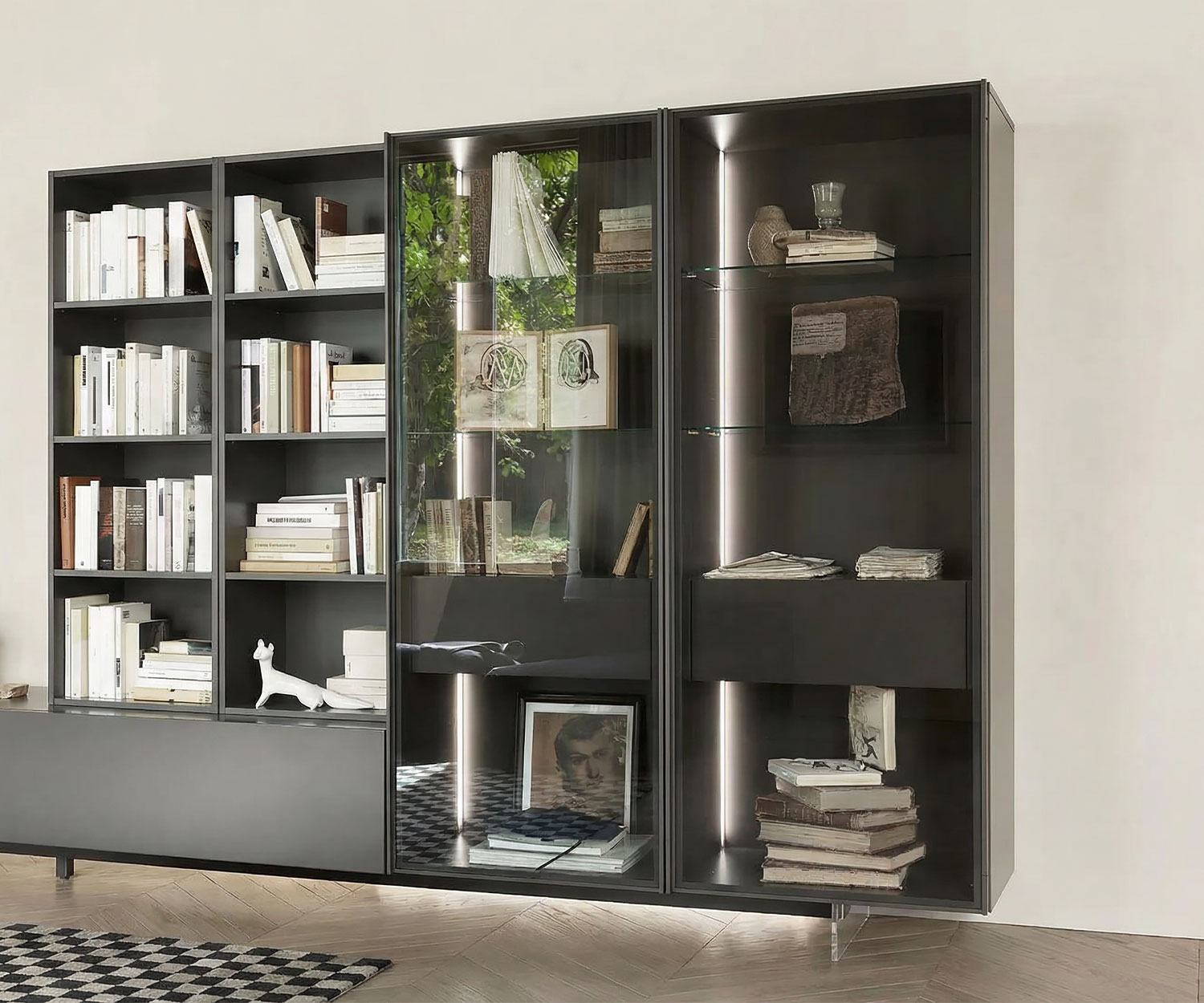 Die Kombination aus Glas und Holz gefällt mir richtig gut, und die optionale Beleuchtung sorgt abends für eine angenehme Atmosphäre im Wohnzimmer.