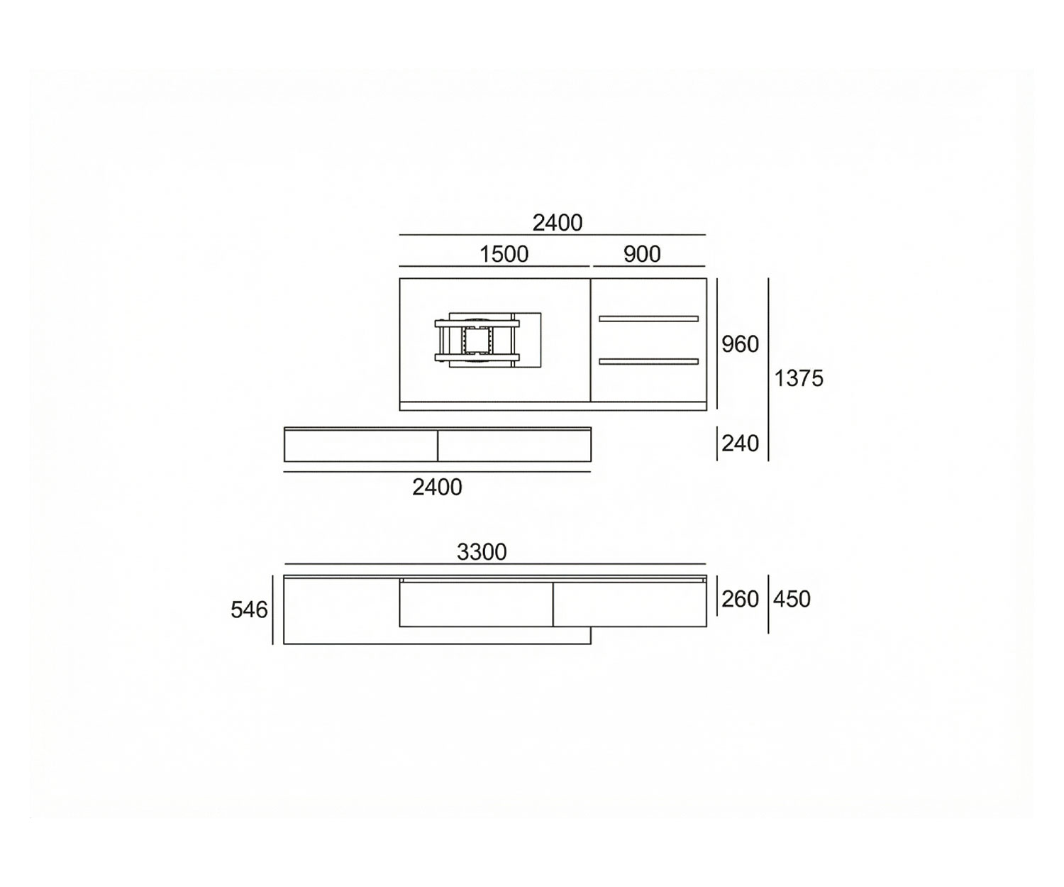B 330 cm / H 137,5 cm / T 25/45/54,6 cm