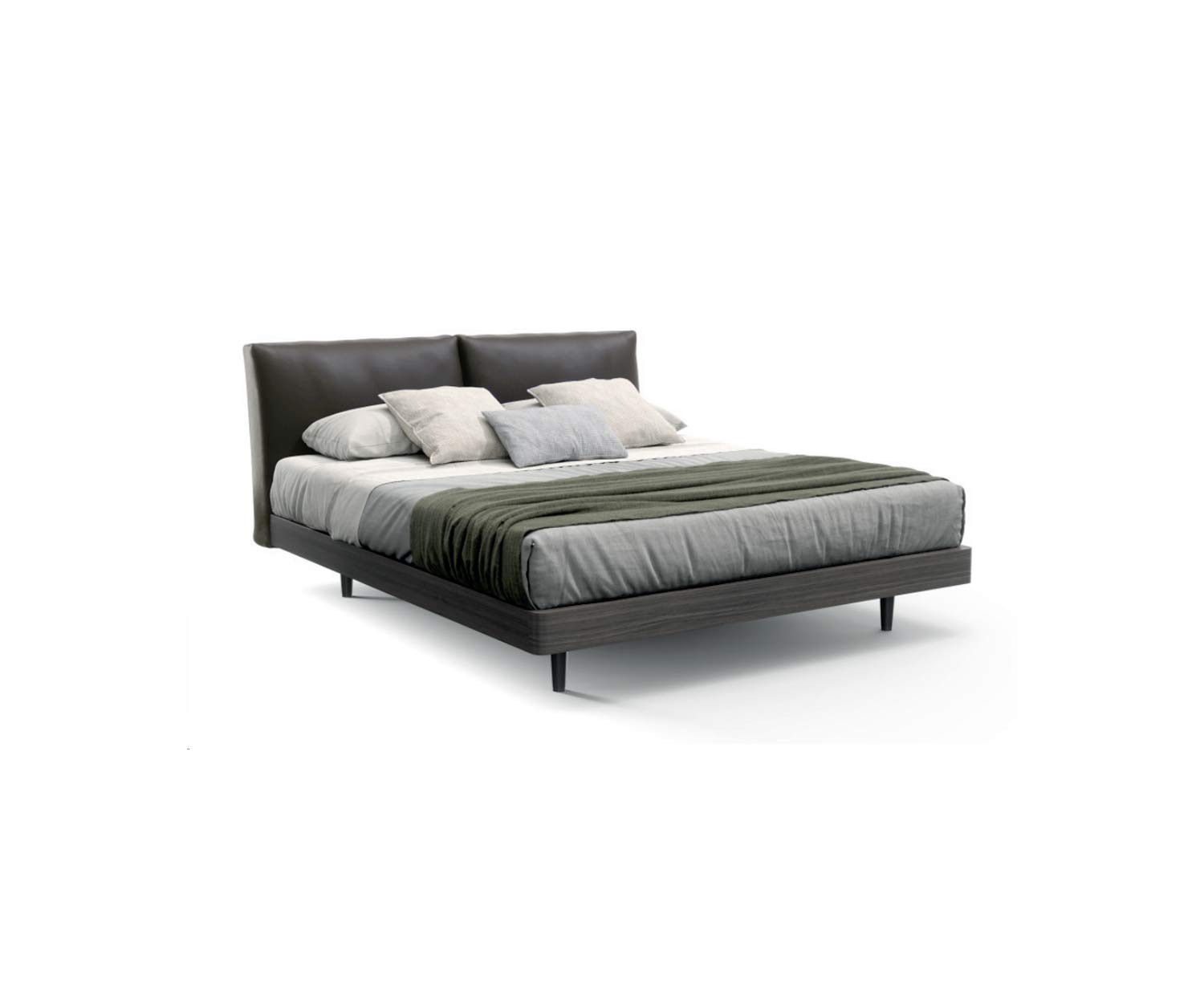 Das schlichte und moderne Designer Bett Nido wird nur auf Bestellung für Sie in Italien gefertigt. Das Novamobili Nido Bett besticht durch einen schmalen Holzrahmen mit nach innen versetzten Füßen. Dies verleiht dem Bett einen schwebenden und besonders leichten Look. Für eine dezente, aber elegante Optik ist der Bettrahmen in Dunkelgrauer Eiche (Eucalipto 82) beschichtet und an den Ecken rund zulaufend (NEU 2020 Version!). Die konischen Beine sind in Schwarz ausgeführt.