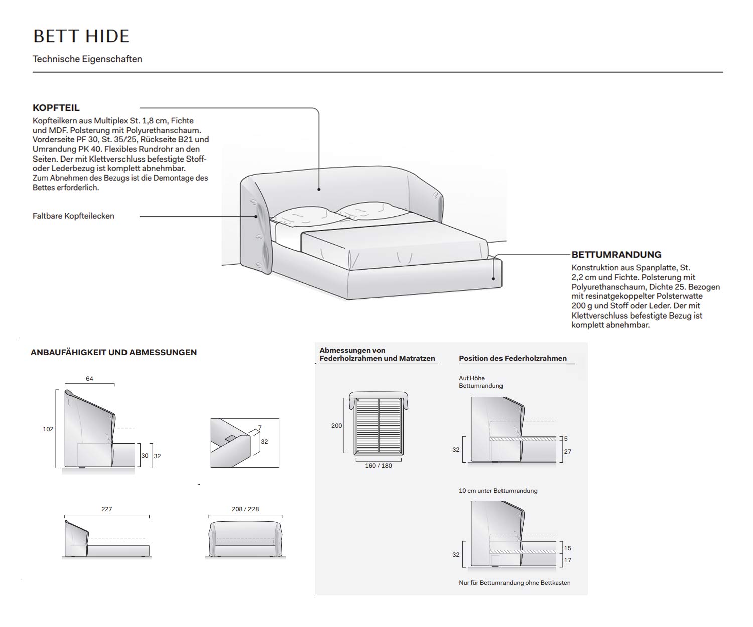 Kopfteilbreite: 208 cm bzw. 228 cm