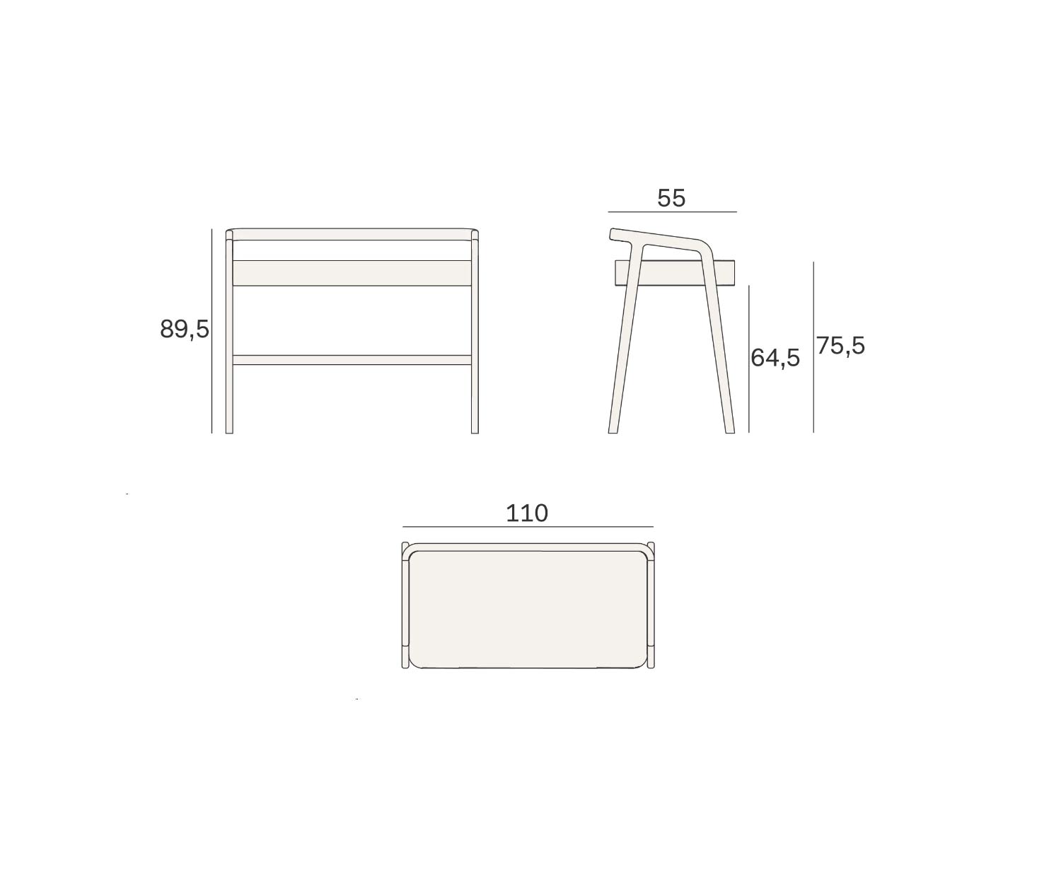 Außenmaße: B 110 cm / H 89,5 cm / T 55 cm