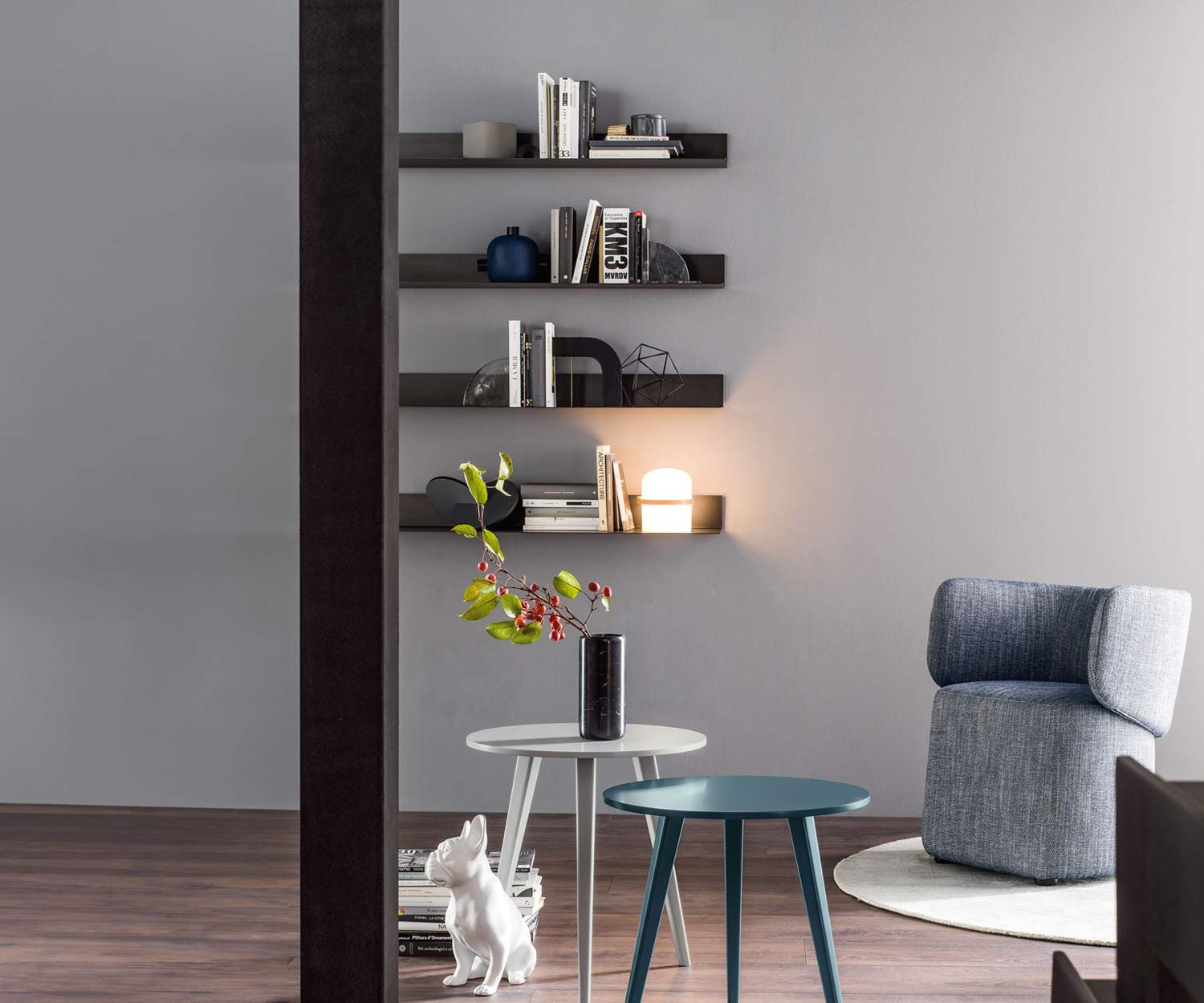 Die Oberfläche des Wandregal Ellie ist in 5 verschiedenen, matten Farblackierungen erhältlich Wählen Sie dafür im Konfigurations-Menü einfach die jeweils gewünschte Farbe aus.