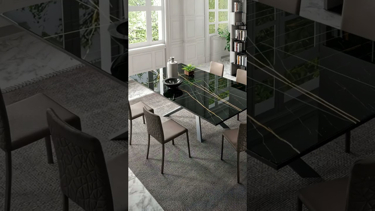 Ozzio ausziehbarer Esstisch 4x4 T240 Marmor Glas Schwarz MG02