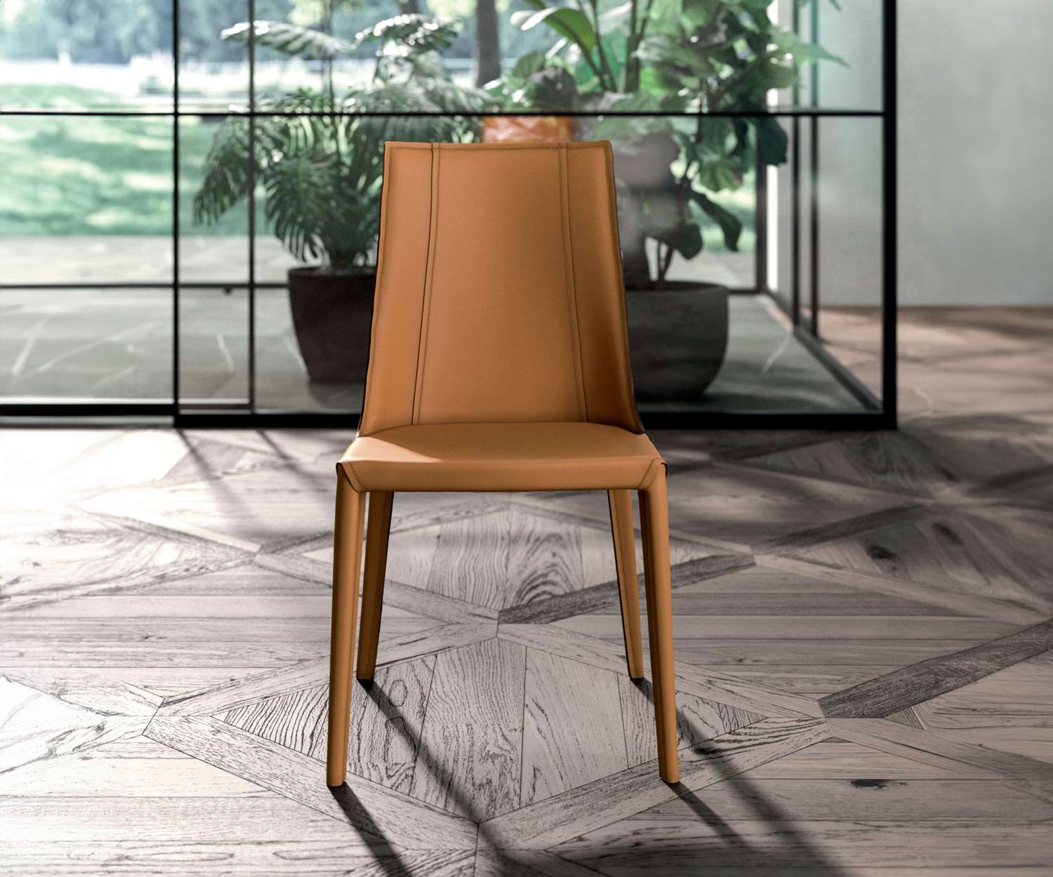 Beim Designer Stuhl Loren S337 ist das Leder sehr feinporig und besonders dick, so dass es sehr robust im täglichen Gebrauch ist.