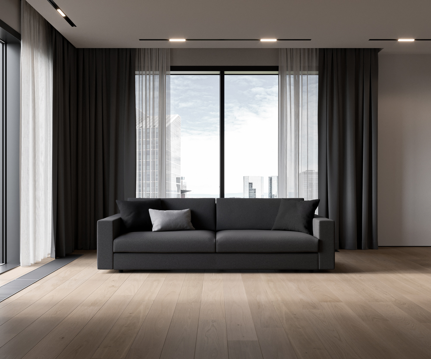 Den Bezugsstoff des Prostoria Classic Design Sofas gibt es in dem Stoff Tundra, der in 2 Farben erhältlich ist: Mittelgrau oder Dunkelgrau.
