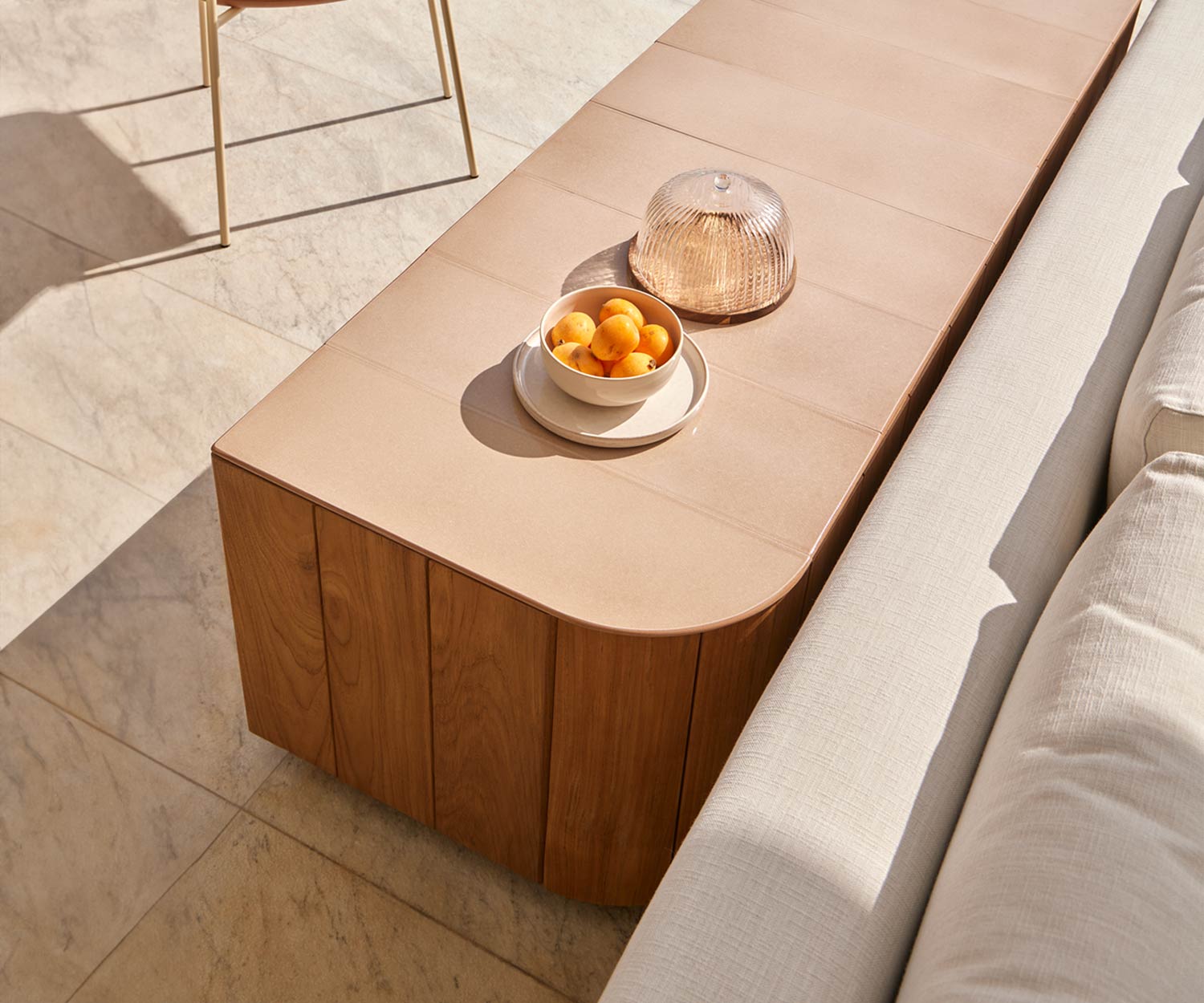 Das Atrio Outdoor Sideboard bietet mit seinen neuen Materialien - die Kombination aus hochwertigem Keramik und Teakholz - ein authentisches Ambiente und ist gleichzeitig wetterbeständig. Passend zum Atrio Designer Sideboard gibt es den Punt Coral Outdoor Esstisch. Machen Sie Ihre Terrasse zu etwas Besonderem.