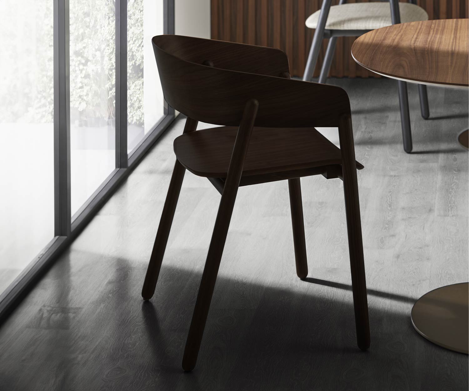 Punt Mava ist ein moderner Design Massivholzstuhl mit runder Rückenlehne. Erhältlich ist der Stuhl in Eiche. Seine runde anschmiegsame Form sorgt für sehr guten Sitzkomfort.
