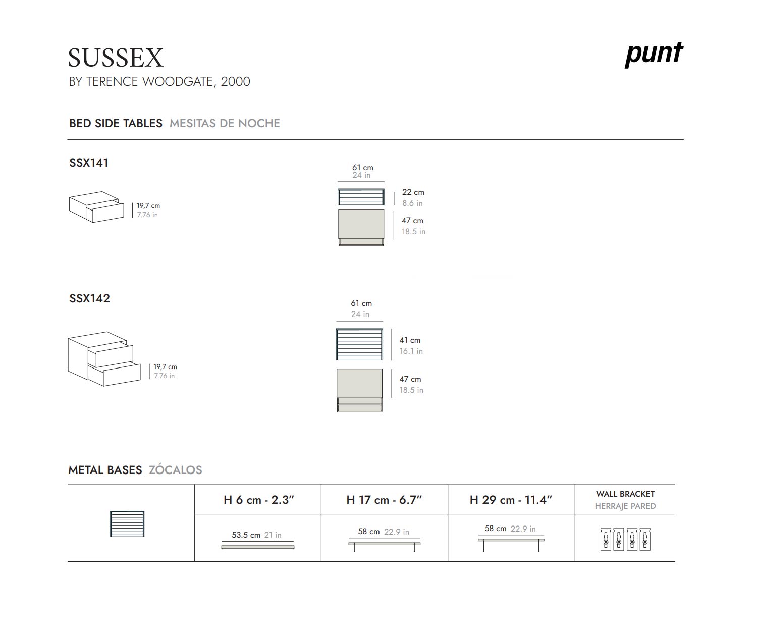 Den Punt Sussex Nachttisch gibt es in der neuen Slim Ausführung mit Metallfüßen oder hängend an der Wand. Passend zum Sussex Designer Nachttisch gibt es das Sussex Sideboard und den Sussex Konfigurator. Die hochwertige Sussex Kollektion wird nur auf Bestellung für Sie in Spanien produziert.