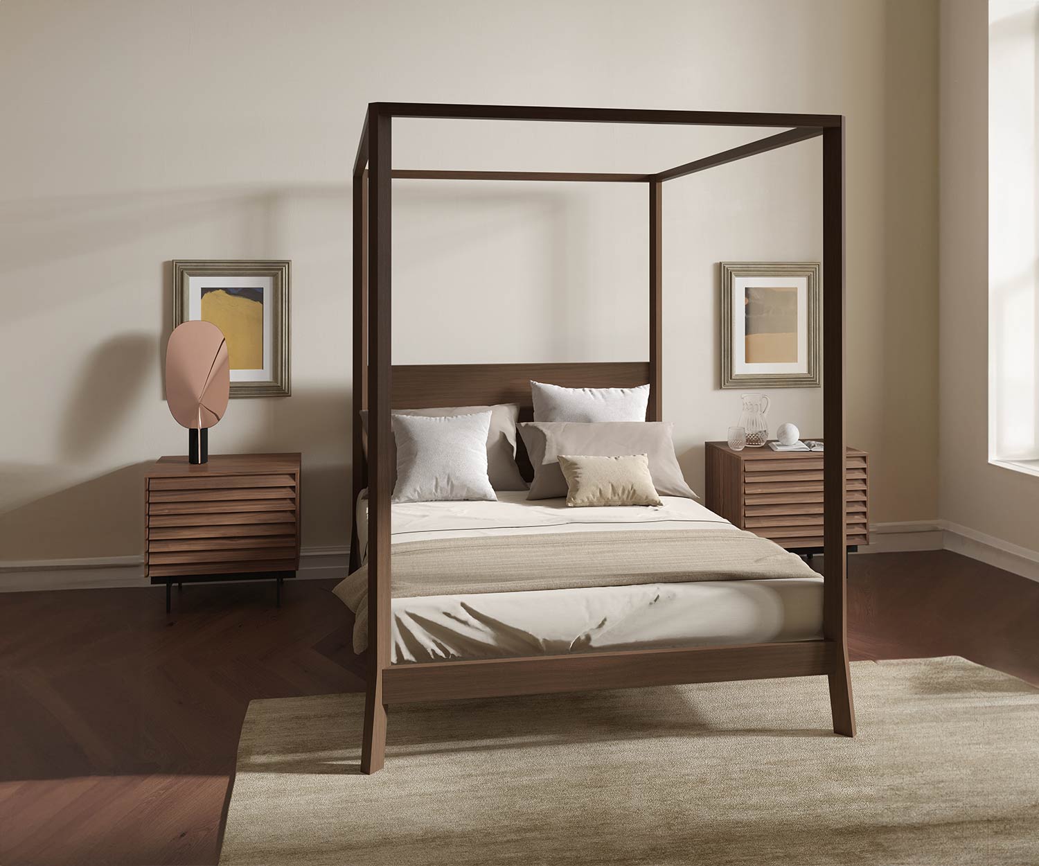 Der von Terence Woodgate entworfene Punt Sussex Design Nachttisch ist ein kleiner, aber feiner Begleiter für ein Schlafzimmer mit exklusivem Wohnstil. Dazu trägt besonders die einzigartige Lamellenfront des Nachttischs und das massive Naturholz in Eiche und Walnuss entscheidend bei. Das außergewöhnliche Design erinnert an Fensterläden im sommerlichen Spanien.