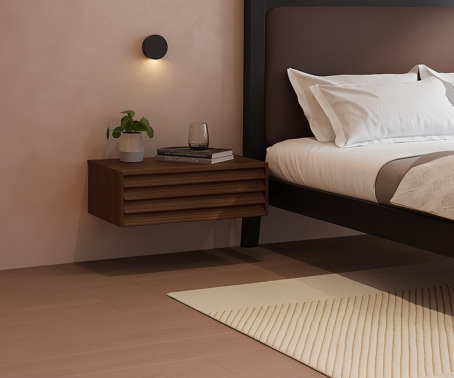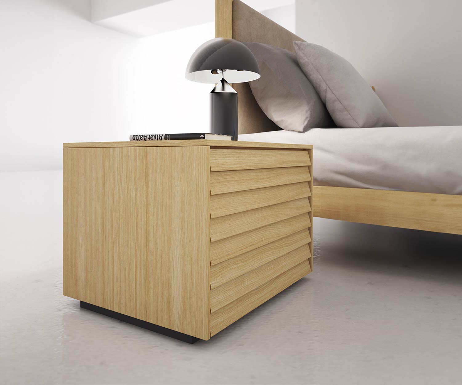 Je nach Bedarf kann jede Ausführung des Punt Sussex Nachttischs - 1 Schublade oder 2 Schubladen - mit flachen 6 cm oder 17 cm und 29 cm hohen Füßen bestellt werden. Der Designer Nachttisch kann auch ganz einfach mithilfe von einem Wandmontageset aufgehängt werden, für mehr Stauraum und ein pflegeleichtes Schlafzimmer. Die Lamellenfront dient gleichzeitig als unsichtbarer Griff und geht flüssig in das Design über. Dank der Hettich-Schienen aus Deutschland laufen die Schubladen besonders leise und ziehen sich immer automatisch zu (Soft-Close Dämpfungstechnik).