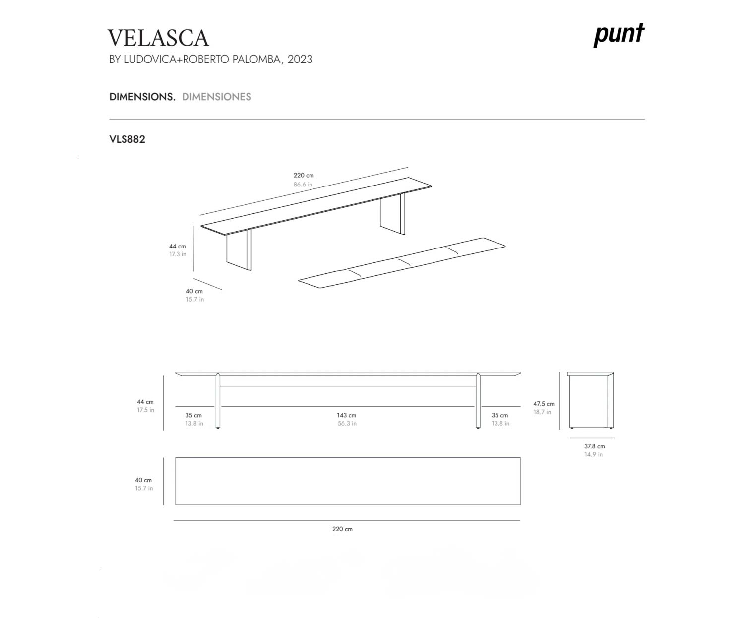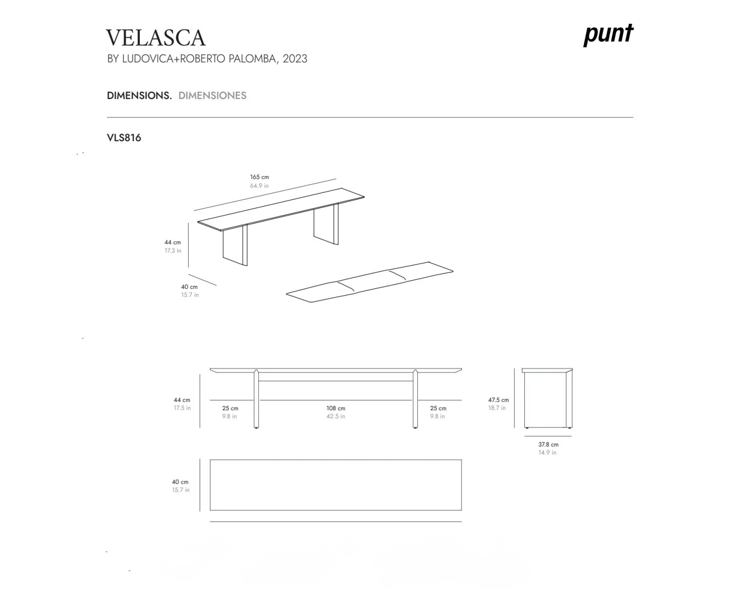 Die Pflege der Punt Velasca Sitzbank ist einfach. Regelmäßiges Abstauben und gelegentliches Abwischen mit einem leicht feuchten Tuch sind ausreichend, um das Möbelstück in einwandfreiem Zustand zu halten. Vermeiden Sie die Verwendung von aggressiven Reinigungsmitteln, um die natürliche Schönheit des Holzes zu bewahren.