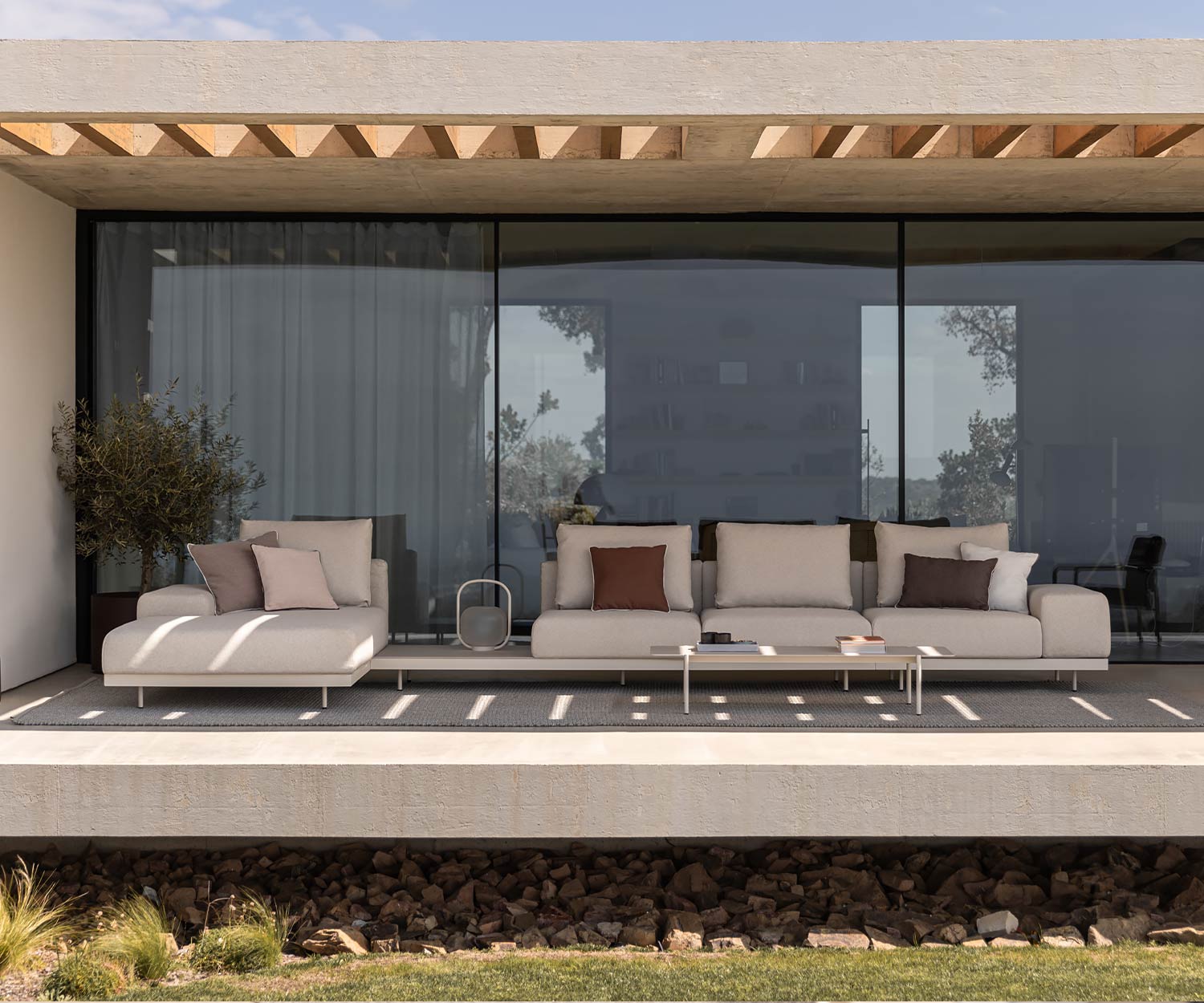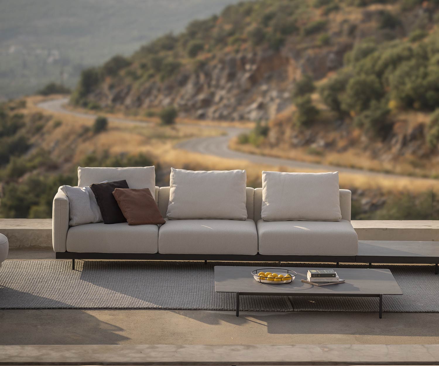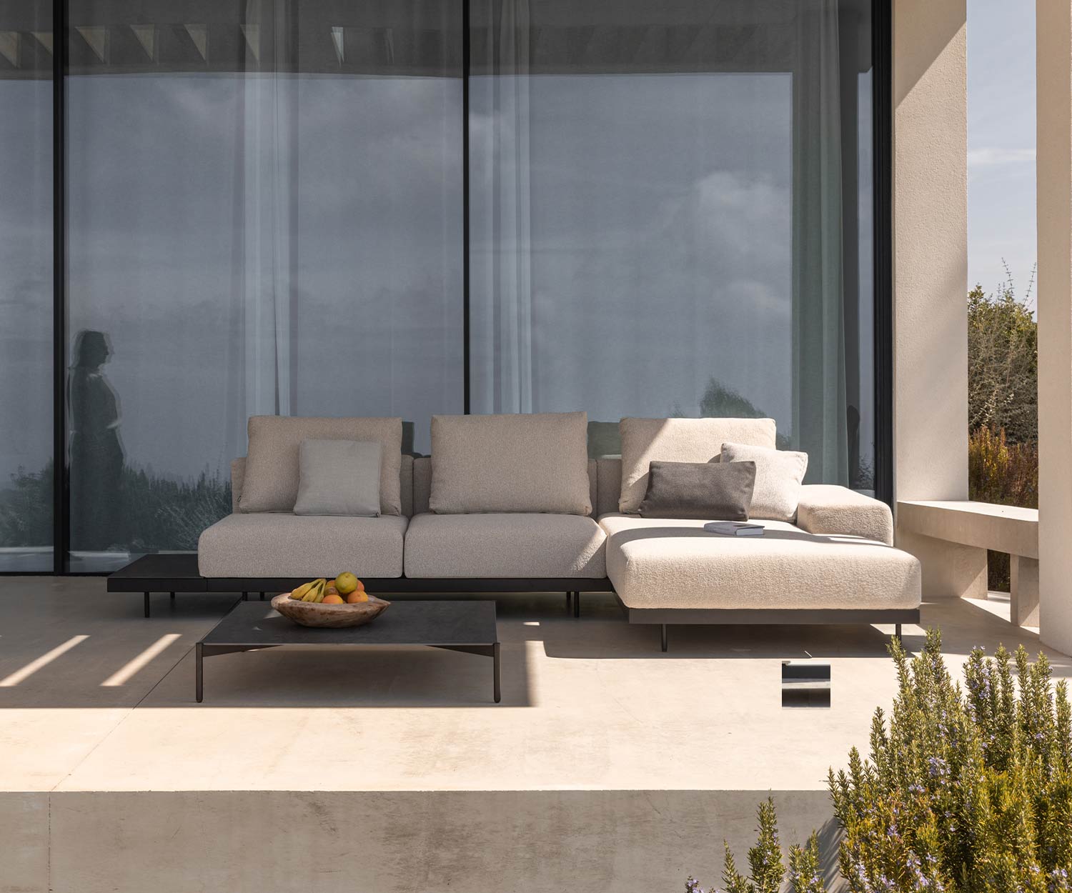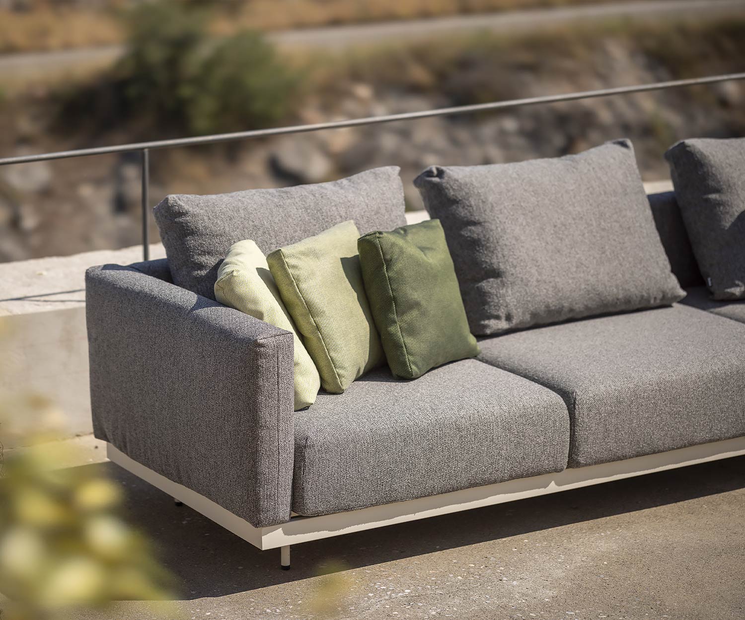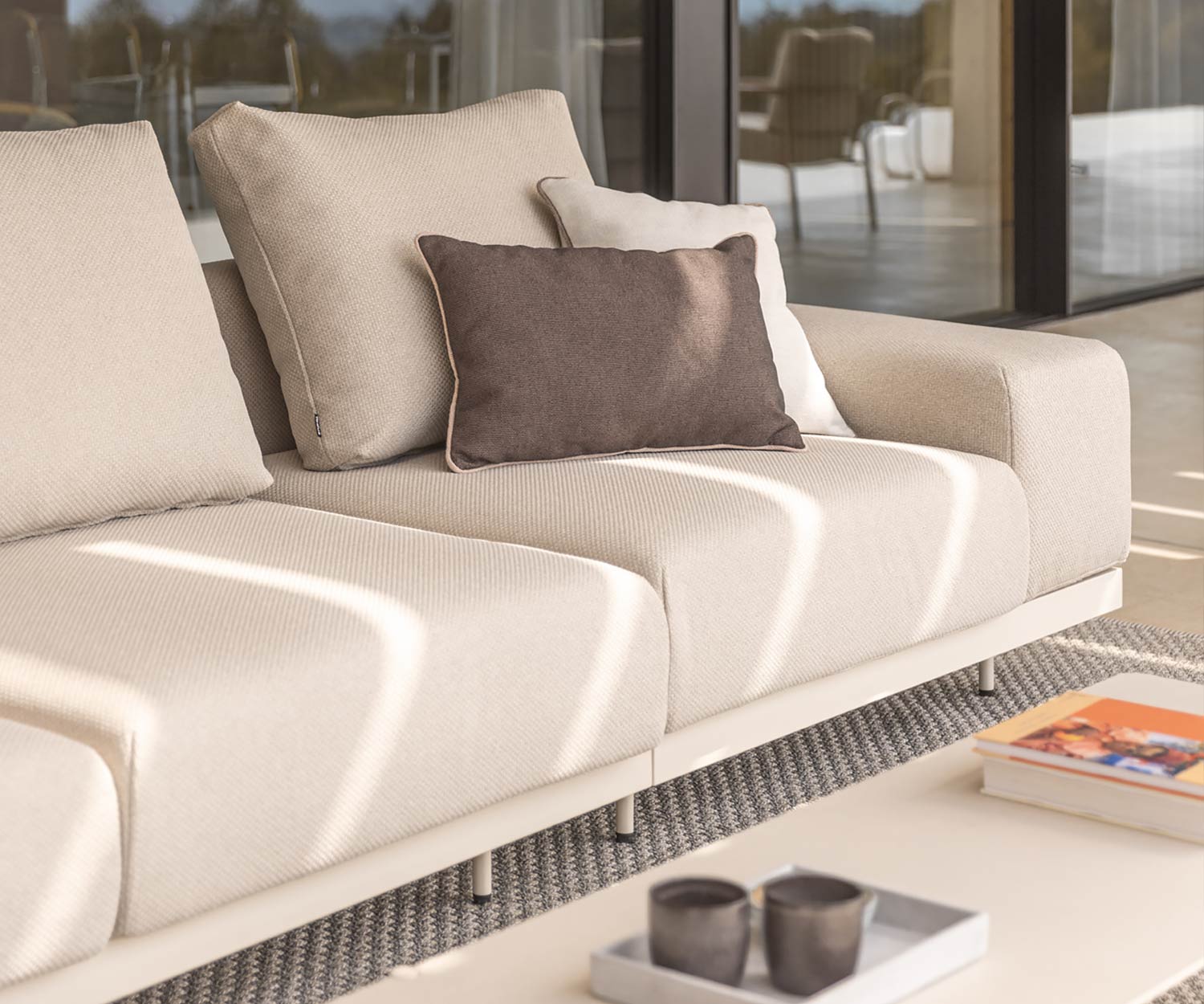 Mit ihrem modernen, geradlinigen Design und den luxuriösen Polsterkissen ist dieses Premium Outdoor-Sofa die perfekte Wahl für großzügige Terrassen und anspruchsvolle Gartenlounges.