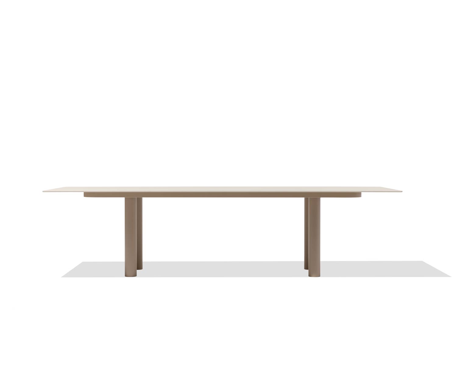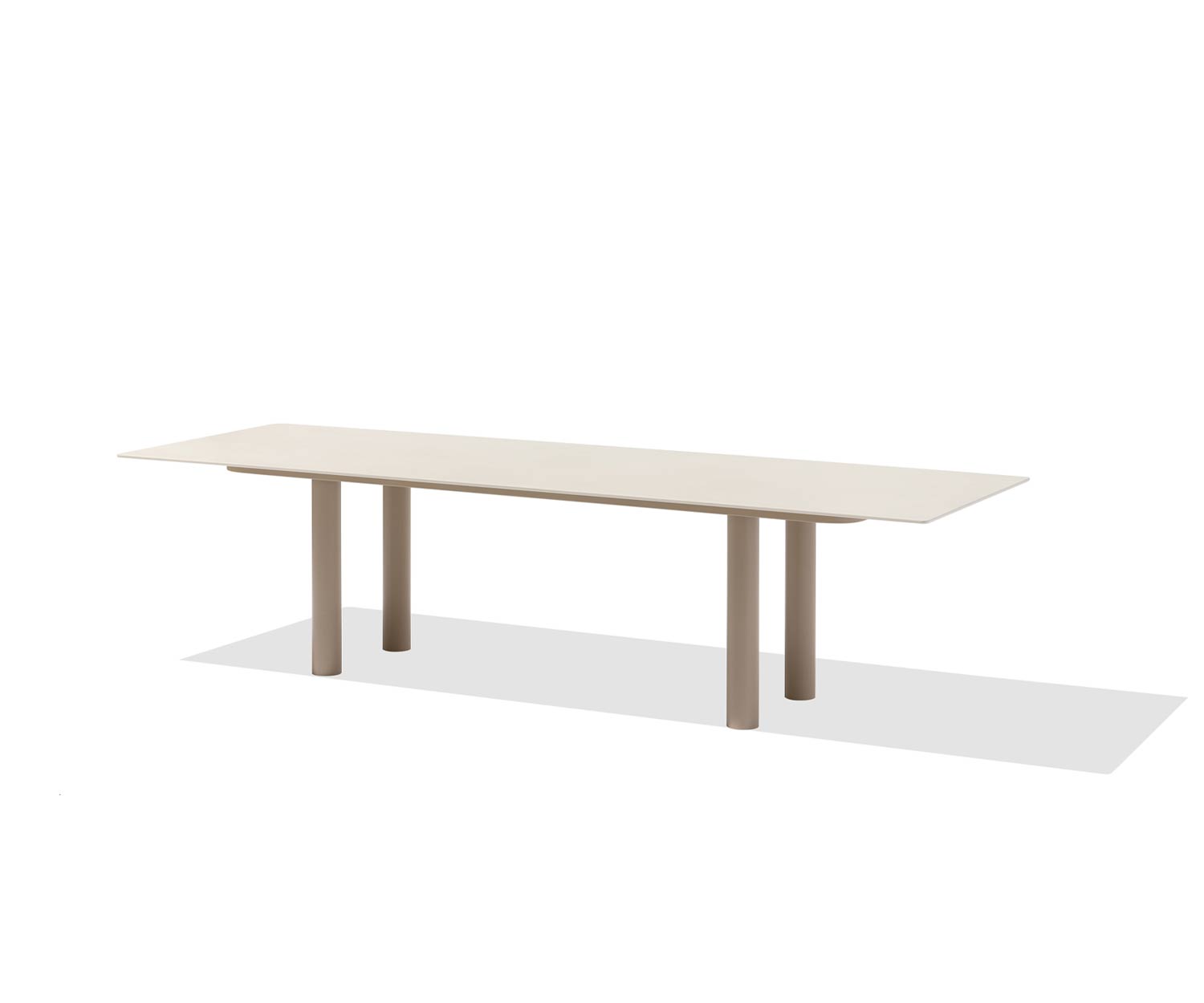 Auf Anfrage sind weitere Farben erhältlich. Auf den Abbildungen ist der Kori Gartentisch mit einem Gestell in Latte Beige und der Keramik Tischplatte in Auster Stein zu sehen.
